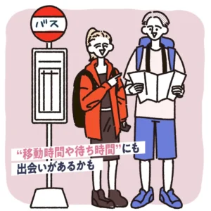 一人旅だと同じように一人でいる方へお願いしやすいため、バックパッカー同士で自然とコミュニケーションが生まれやすいタイミングです。