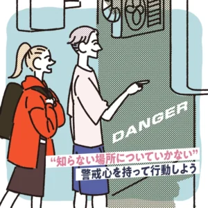 とくに海外では、知らない場所についていったことでさまざまな被害に遭う危険があることを、ニュースで目にしたこともあるでしょう。決して他人事ではなく、現地で意気投合して食事にいった相手が危険な人物だったケースには、本当に注意する必要があります。