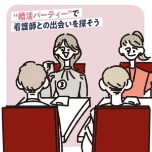 看護師と知り合えるかは運次第ですが、婚活パーティーや街コンに参加するのもおすすめです。