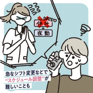 場合によっては直前までシフトがわからなかったり、急な出勤によりドタキャンされたりすることも。