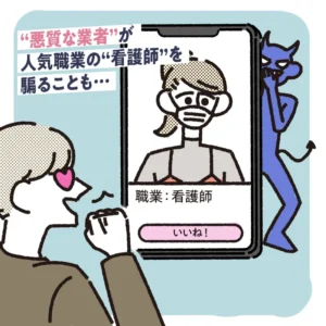 マッチングアプリで看護師を探す場合、看護師は男性から人気職種であるゆえに、看護師を偽ったニセモノがいることもあります。