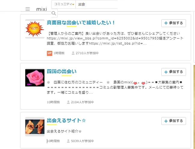 mixiで出会いを探すなら、コミュニティを活用するのが一般的です。