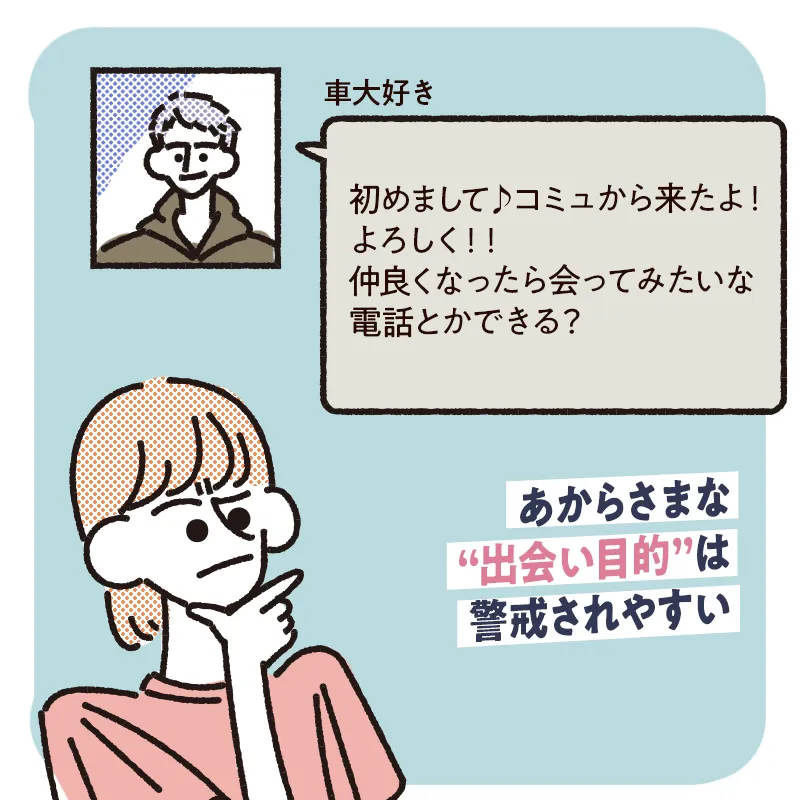 - 出会いを匂わせると相手に警戒されやすい